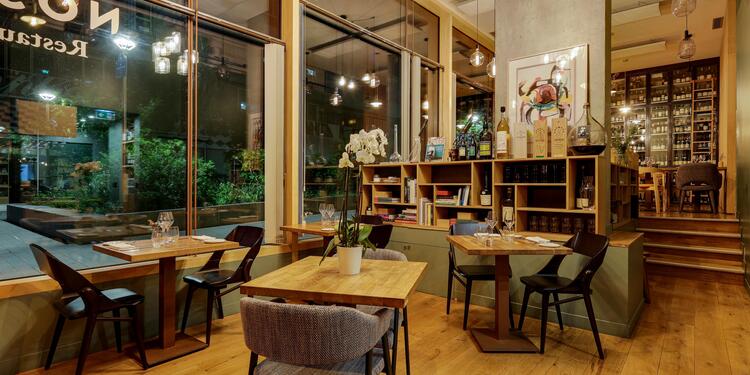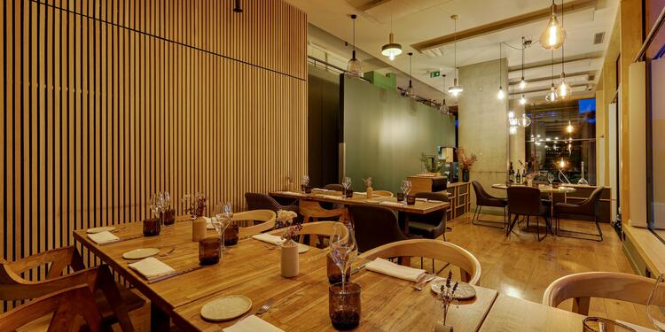 Nosso propose une cuisine moderne et inventive dans un cadre contemporain lumineux. Les menus dégustation évoluent au fil des saisons, mettant en valeur chaque ingrédient dans son intégralité. La salle principale et ses grandes baies vitrées offrent un cadre idéal pour vos repas d'affaires ou célébrations en groupe.