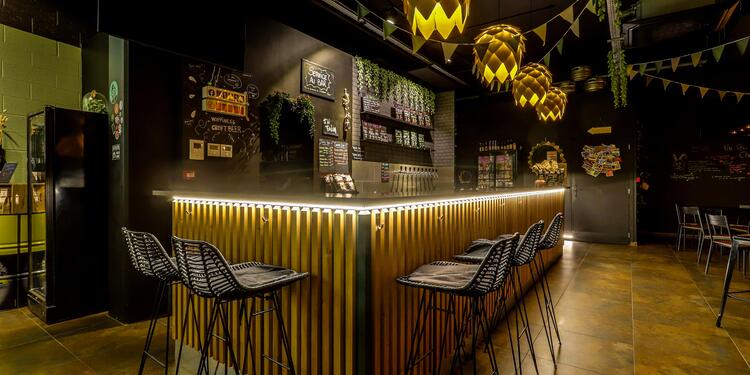 Hoppiness Craft Beer vous accueille dans le quartier dynamique de Marcq-en-Barœul pour vos afterworks et soirées entre collègues près de Lille. Ce bar à bière craft propose plus de 300 références avec 10 tirages pression constamment renouvelés provenant de brasseries différentes. L'établissement offre également une sélection de vins et boissons sans alcool, parfait pour satisfaire tous vos invités lors de vos événements en groupe.